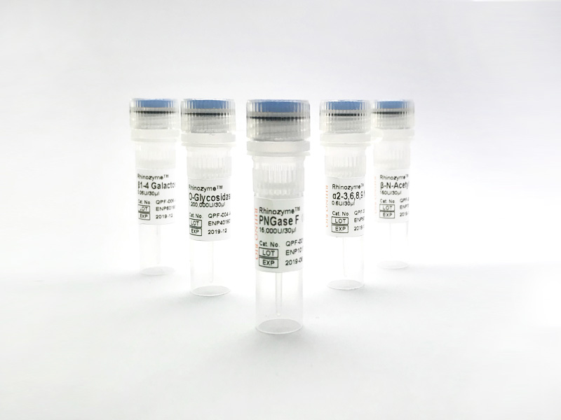 Rhinogen? Protein Deglycosylation Kit Ⅲ 具有穩(wěn)定性高、比活性高等特點(diǎn),是五種高度純化和非常穩(wěn)定的糖苷內(nèi)切酶的組合,適用于蛋白質(zhì)組學(xué)及糖生物學(xué)研究中糖蛋白上所有N-連聚糖及相對(duì)比較復(fù)雜O-連聚糖的有效釋放。