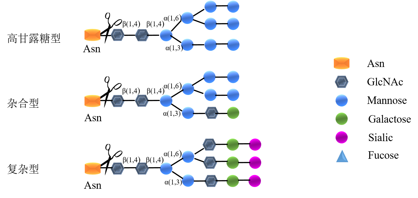 圖1. PNGase F可以從糖蛋白或糖肽上切割釋放幾乎所有類(lèi)型的N-連糖鏈