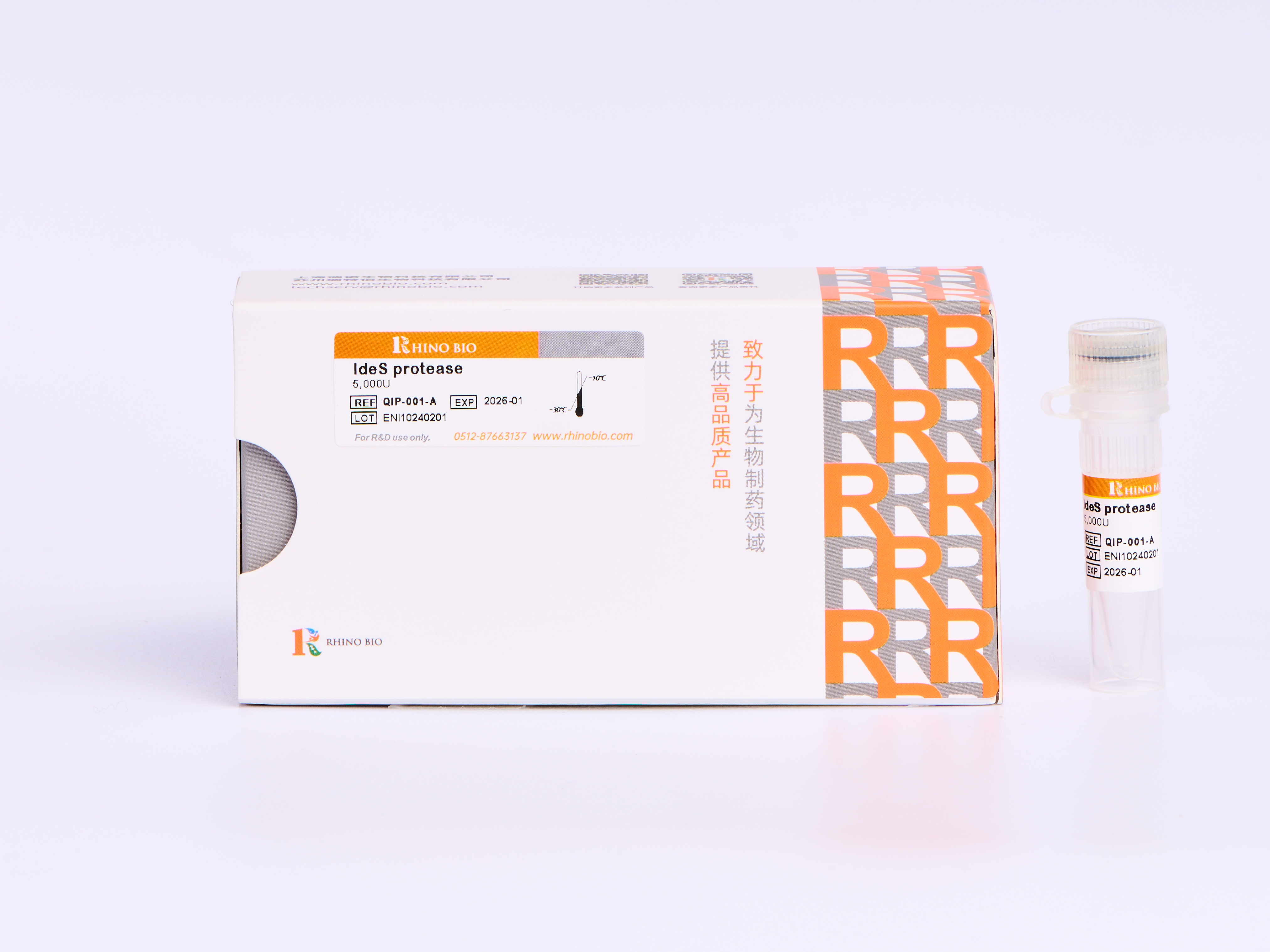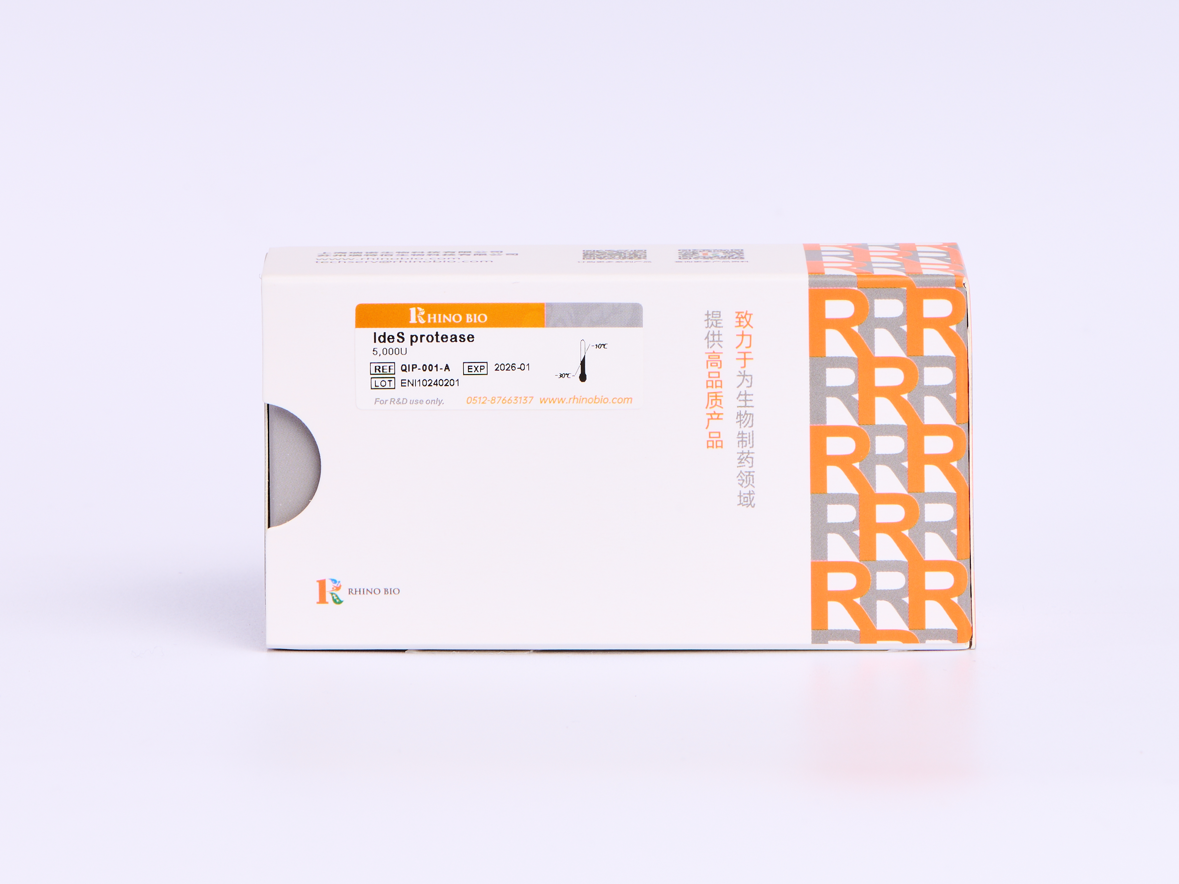 IdeS僅在鉸鏈區(qū)下方的一個(gè)特定位點(diǎn)裂解IgG以產(chǎn)生F(ab')2和Fc片段的免疫球蛋白降解酶。Rhinogen? IdeS protease是利用E.coli系統(tǒng)重組表達(dá)生產(chǎn),并經(jīng)過(guò)分子改造得到的重組IdeS蛋白。其含有His標(biāo)簽,在酶切完成后很容易從酶切反應(yīng)體系中分離去除。IdeS蛋白酶在生理?xiàng)l件下切割I(lǐng)gG,從而保持免疫反應(yīng)性。在pH 6.0~8.0范圍的常用緩沖液中,IdeS蛋白酶可有效切割多種抗體。經(jīng)過(guò)改造后的IdeS蛋白酶具有更高的酶活和更廣的底物特異性,除可酶切人IgG1~4、猴、羊、兔IgG外,還對(duì)小鼠IgG2a、IgG3具有特異性切割活性。