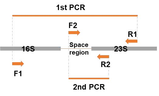 本試劑盒提供了PCR Mix(包含Taq DNA Polymerase、PCR Buffer、dNTP和Loading Buffer),擴增完畢后可以直接上樣電泳,可快速、有效、高靈敏度地檢測支原體污染。配套的陽性對照,便于確定PCR檢測是否能正常工作及樣品中是否存在抑制PCR反應(yīng)的物質(zhì)。原核生物的rRNA堿基序列非常保守,而rRNA操縱子上編碼rRNA的DNA間隔區(qū)(space region)在各種生物種間的堿基序列差別很大,如16S和23S之間的間隔區(qū)。這個間隔區(qū)的DNA序列及長度在支原體各個種屬間既有非常保守的部分,也有較大差異的部分。在編碼16S和23S的保守區(qū)DNA上設(shè)計一對F1/R1引物,用于擴增16S和23S之間的間隔區(qū),這就是巢式PCR的第一輪PCR(1st PCR),用于初步鑒定是否有支原體污染;然后在編碼16S和23S rRNA的DNA間隔區(qū)的保守區(qū)上設(shè)計一條F2引物,在編碼23S rRNA的DNA上設(shè)計一條R2引物進行巢式PCR的第二輪PCR(2nd PCR)。通過巢式PCR可以大大提高檢測的特異性和靈敏度。