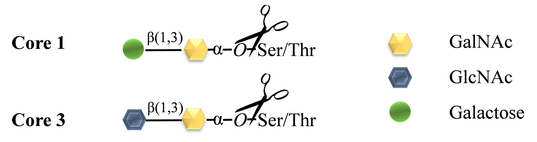 圖1 Rhinogen? O-Glycosidase作用O-連二糖核心的類型