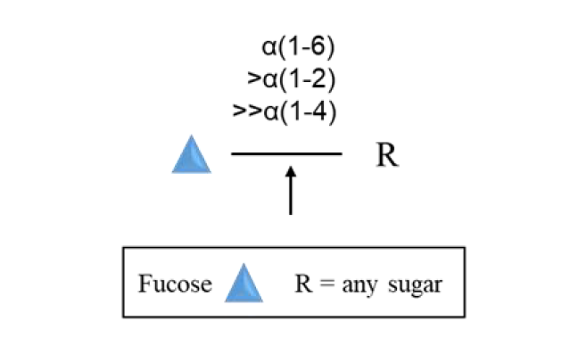 Rhinogen α1-2,4,6 Fucosidase是一種廣泛特異性的外切糖苷酶,可催化寡糖中α1-2、α1-4和α1-6末端巖藻糖殘基的水解,而且與其他鍵相比,可以更有效地切割α1-6巖藻糖殘基。