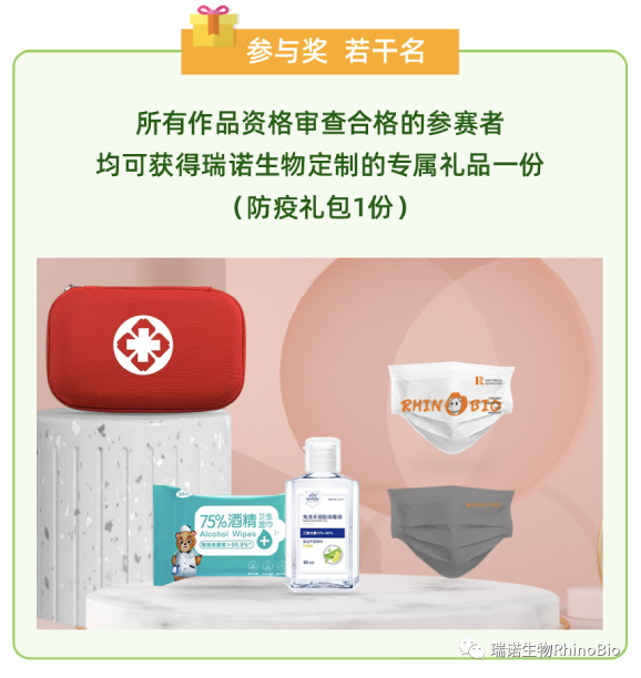采用瑞諾生物產(chǎn)品包裝進(jìn)行創(chuàng)意制作,經(jīng)過評選和投票選出的優(yōu)秀獲獎(jiǎng)作品,將于2022年10月12日通過“瑞諾生物RhinoBio”官方微信平臺(tái)以推文形式公布評審結(jié)果。