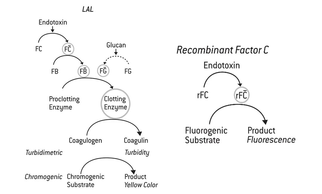 傳統(tǒng)鱟試劑(LAL)法與重組C因子法的檢測(cè)原理示意圖